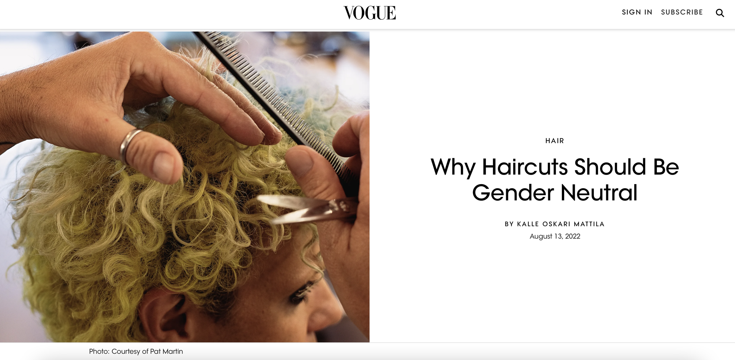 The binary is also reflected in price. While gender-based pricing is now unlawful in some states like New York and Massachusetts, countless salons across America still charge more for “women’s haircuts.”